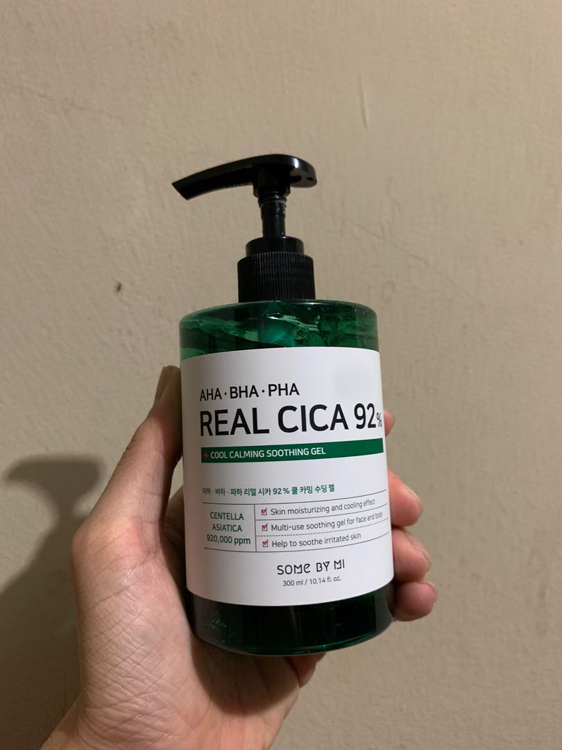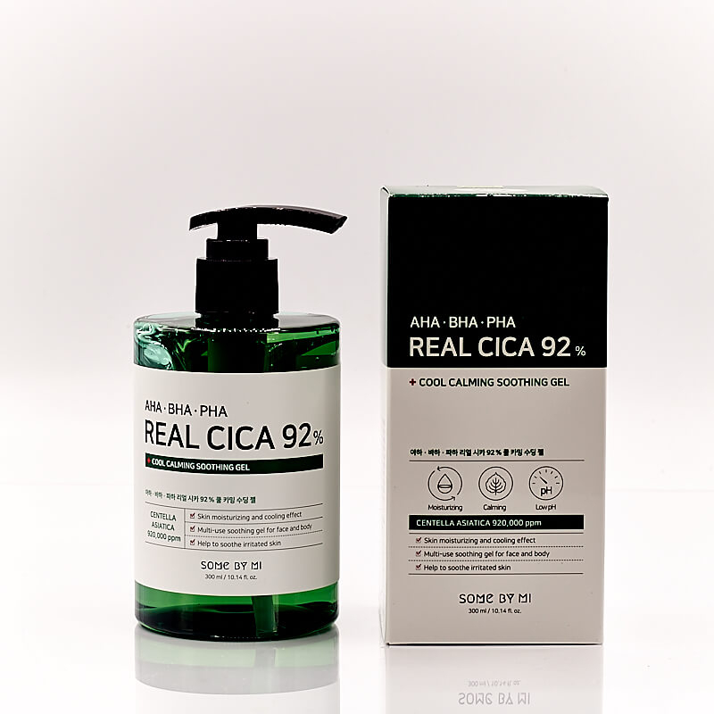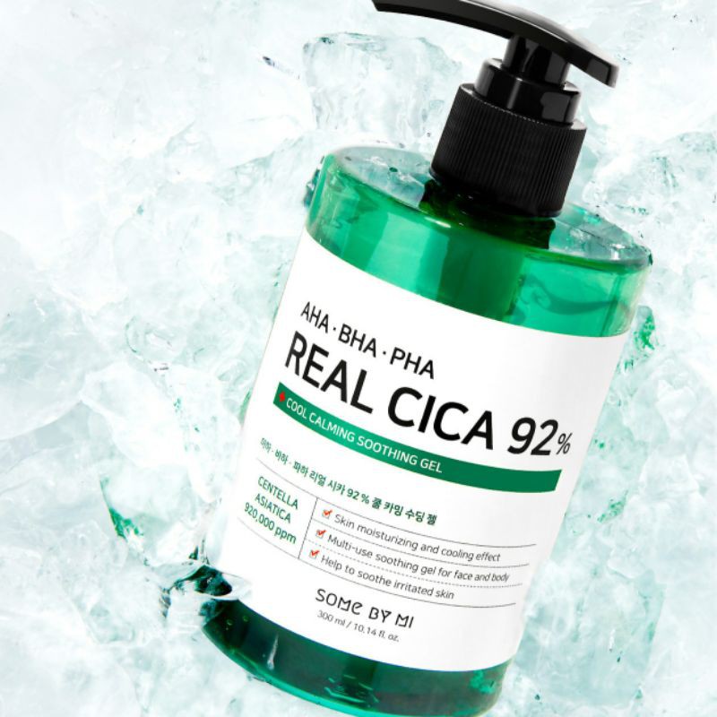 SOME BY MI, AHA/BHA/PHA Real Cica 92% Cool Calming Soothing Gel, 10.14 fl oz (300 ml) By SOME BY MI. 1,149 Reviews | Write a review | 9 Q&A In Stock . Best By: 09/2025. Cica Soothing Gel contains AHA, BHA, PHA to control excessive sebum and dead skin cells, and 92% of Centella Asiatica Extract helps to soothe irritated skin from the external.