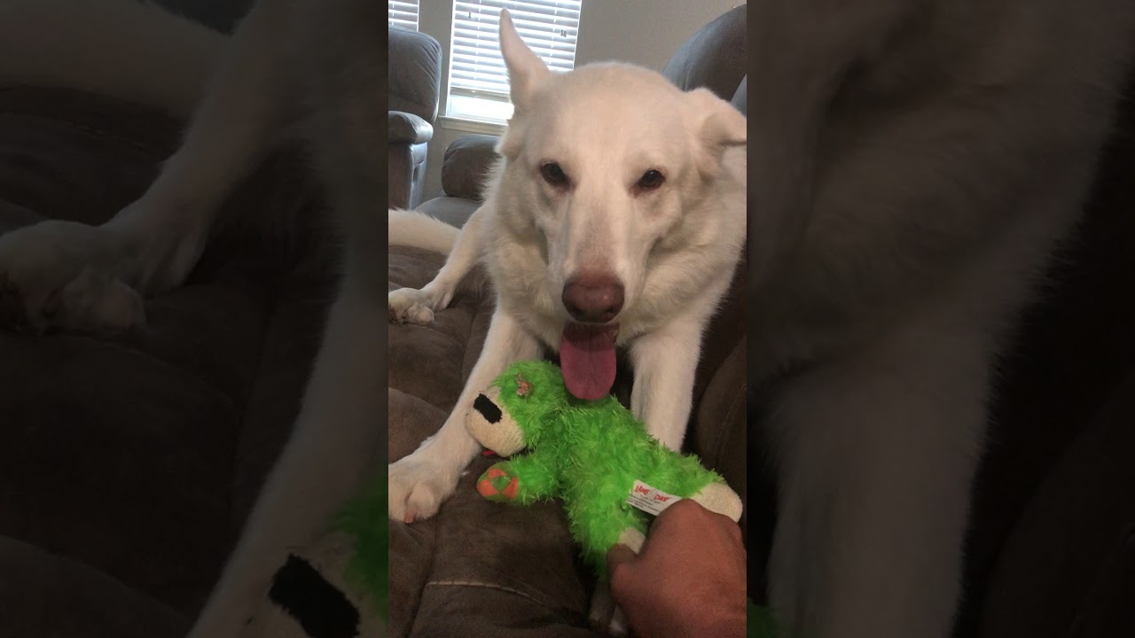 Albino German Shepherd With Toys Albino dog, White husky, White german shepherd