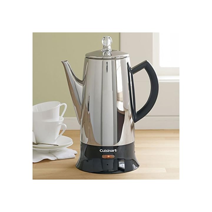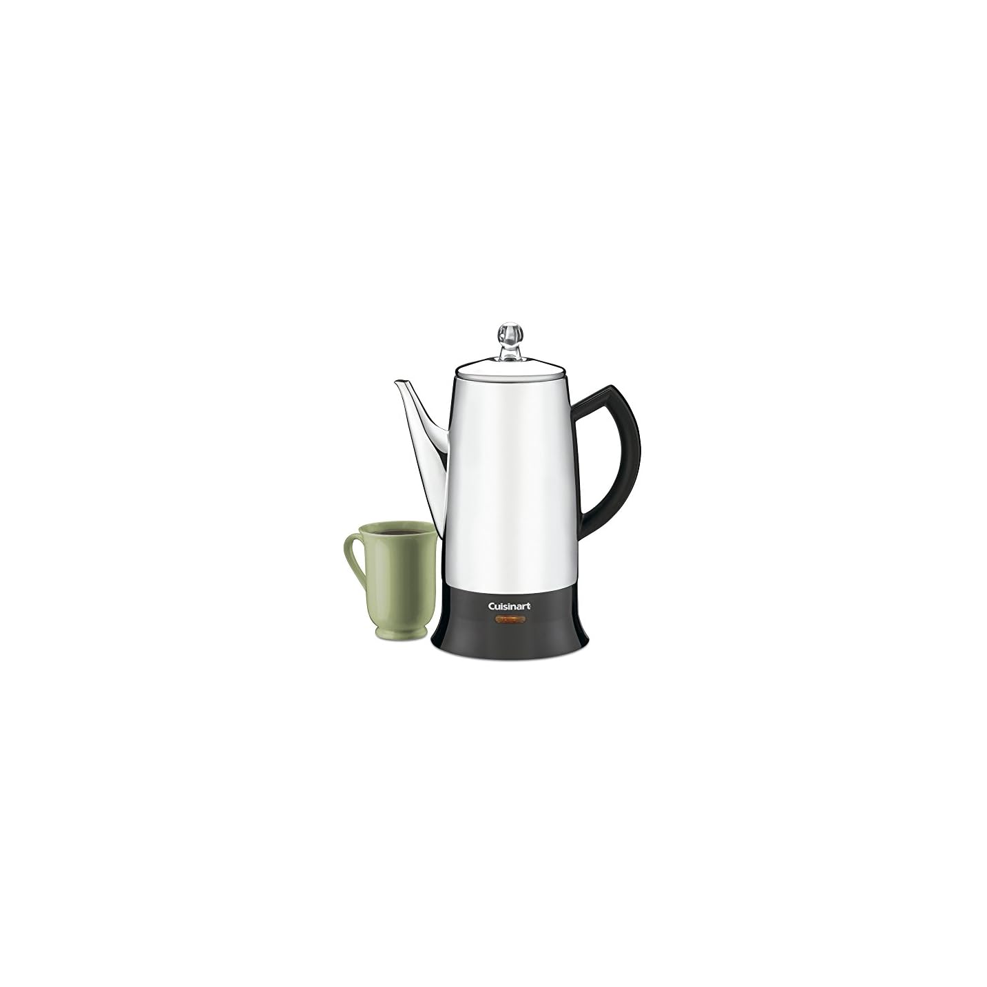 Shop the Cuisinart Classic 12-Cup Stainless-Steel Percolator. This classic 12-cup stainless-steel percolator from Cuisinart pours 6 - 12 cups of coffee through a no-drip, tapered spout.. Easy-clean with removable, dishwasher-safe parts. Dimensions & More Info Use & Care Shipping & Returns Price Match Guarantee.