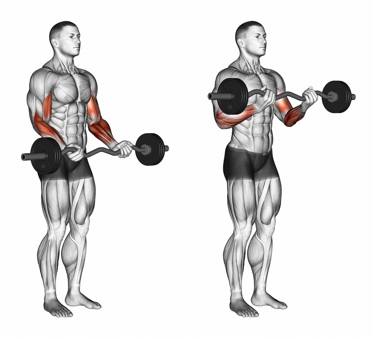Comment effectuer le Curl barre prise pronation biceps avantbras Anatomie musculation