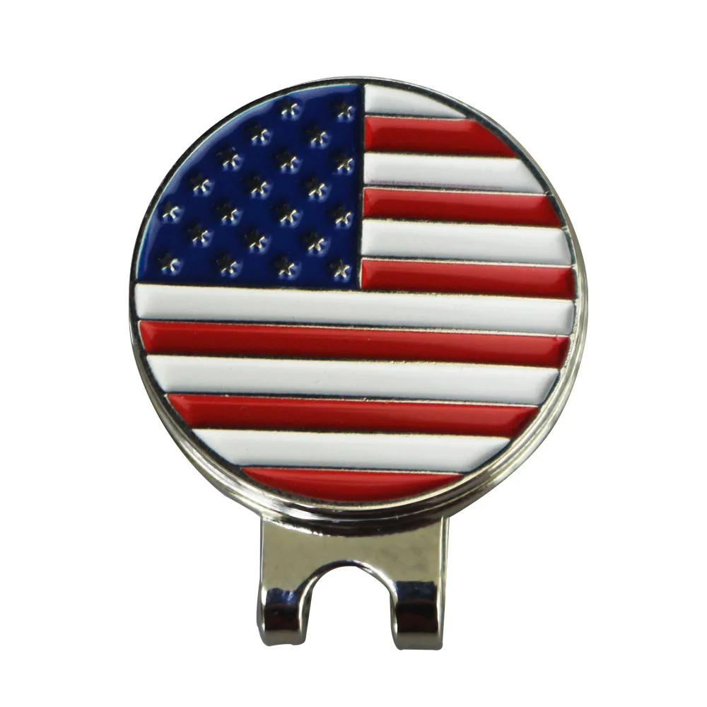 American USA Flag Golf Ball Marker with Golf Hat Clip Silver Color Blankin Golf