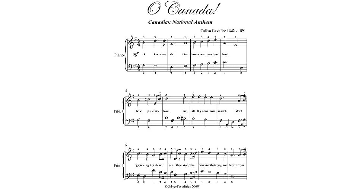O Canada (the National Anthem of Canada) $ 5,59. An easy piano arrangement of the Canadian national anthem. Playing from this score is perfect for beginners with basic note-reading skills - it is perfectly optimized between easiness to play and a great-sounding result! Also chord symbols are written to help playing with other instruments or.