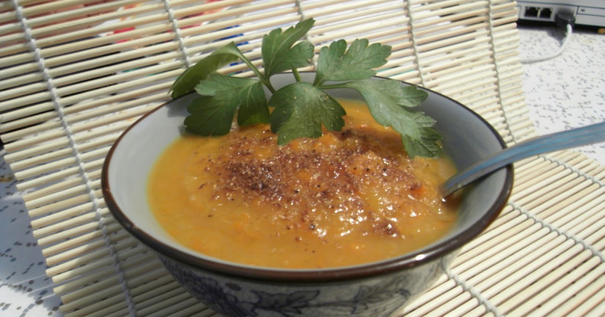 Potage carotte, courge musquée et lentilles corail. Nota Banane. Préparation : 30 min Cuisson : 30 min. Ingrédients. 250 gr de courge musquée. 4 carottes. 1 oignon. 1 gousse d'ail. 1 filet d'huile d'olive. 100 gr de lentilles corail. 1 cuillère à café de cumin. 1 cuillère à café de curcuma. 1 cuillère à café de bouillon de légume. Eau. Sel, poivre.
