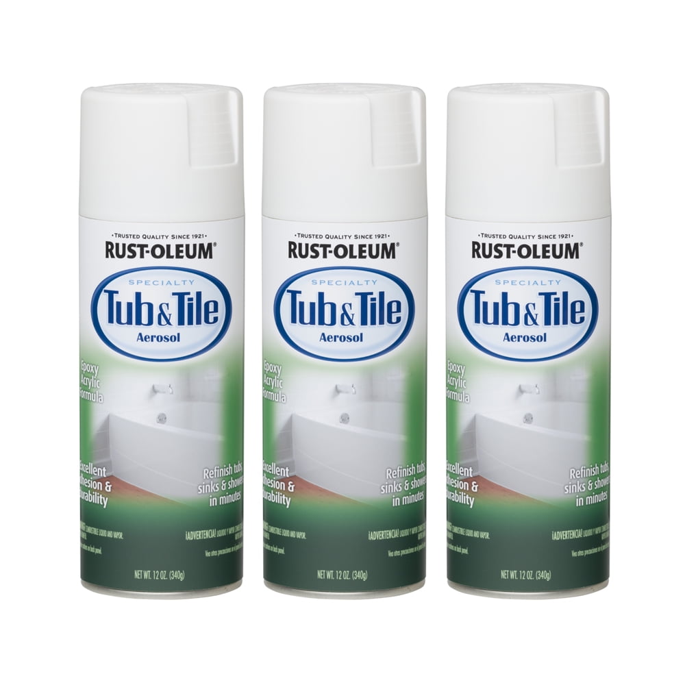 Model # 280615 Store SKU # 1000795015. Rust-Oleum® Specialty Tub & Tile Aerosol is a gloss white finish that looks like porcelain. It will maintain its colour even in hot, soapy water. Use Tub & Tile Aerosol for ceramic tile, glazed block, Formica®, fibreglass, concrete grout, etc. Not recommended for galvanized metal or other metal surfaces.