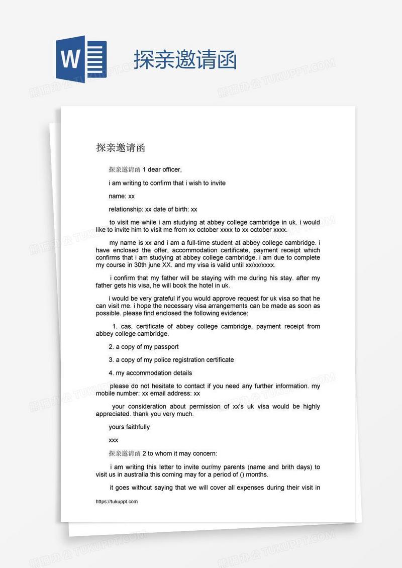 中国探亲签证邀请函范文模板下载_签证_图客巴巴